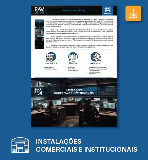 A EAV Systems disponibiliza para download o detalhamento dos principais mercados atendidos dentro das suas três modalidades de intervenção – CPI – Consultorias, Projetos e Instalações.